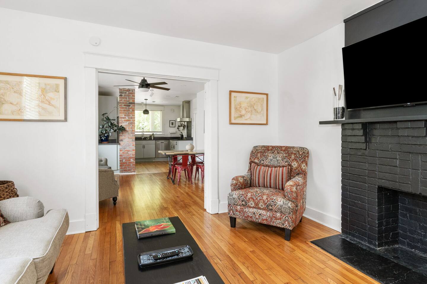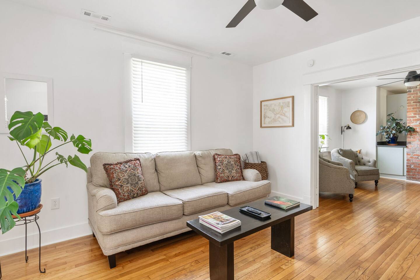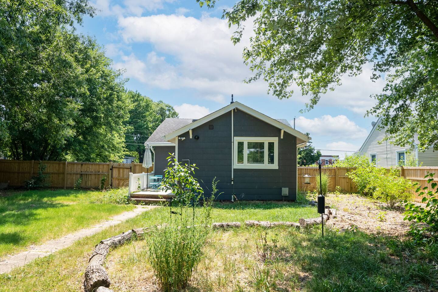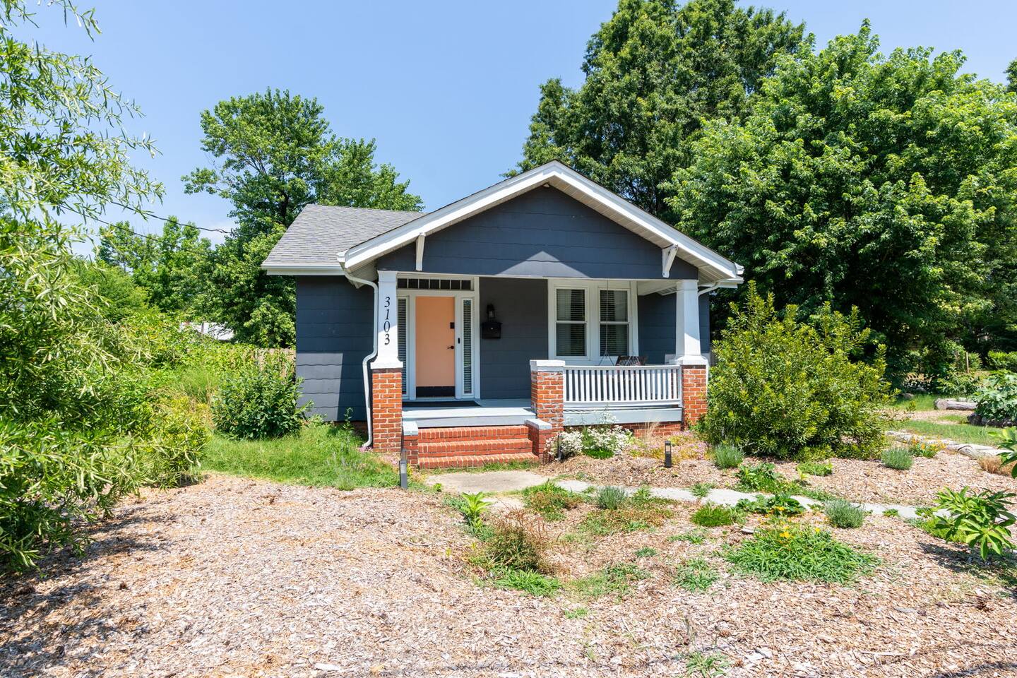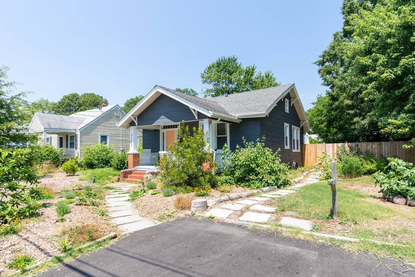Highlights You’ll Love: * Spacious ⅓-acre private backyard surrounded by a 6-foot privacy fence — perfect for unwinding and letting pets explore * Two queen-sized bedrooms designed for a restful night’s sleep with blackout curtains * Convenient paved driveway with 2 private parking spaces — includes access to a 120V outlet for EV charging * Beautiful permaculture garden featuring fruit trees and pollinator-friendly native plants * Newly renovated and fully equipped chef’s kitchen * Sleeper sofa in the living room for additional guests or flexible sleeping arrangements * Quick 10-minute drive to downtown Richmond When you arrive, a stone path, lined with solar lights brings you to the front porch with a swinging bench. The smart-lock entry opens to the living room where there is a full-sized pull out sofa, comfy chair, fireplace and 55-inch smart TV. From there french doors open to a large dining room with a lounge area connecting to the kitchen. The kitchen is fully equipped with high-tech appliances, as well as coffee and tea and all of the essentials you would need to cook a meal. This home has 2 bedrooms, each with a queen bed and spacious closet for storage. For those who like to sleep in, there are black-out curtains in both bedrooms. For easy device charging there are touch-lamps with USB-C and regular USB ports on both sides of each queen bed. The home has one full bathroom with a shower/tub. Shampoo, conditioner and body wash are all provided. Towards the back of the house is the laundry room that has a stacked washer & dryer, laundry soap, ironing board, iron, trash and recycling container. ABOUT THE PERMACULTURE YARD The 1/3-acre expansive permaculture garden began in 21 as a passion project by the owner, Melissa, who designed the space to support wildlife, restore the local ecosystem, and create a peaceful refuge for guests and pets alike. The property is graced by majestic old growth willow oaks that provide shade and shelter, creating a serene canopy for the garden below. Guests can enjoy bird watching at their leisure, as a wide array of bird species visit the feeder to feast throughout the day. Butterflies — including monarchs — flutter gracefully among the flowering plants, adding to the tranquil atmosphere. The landscape features an abundance of food-bearing and native species — like figs, elderberries, strawberries, mulberries, and persimmon — that you're welcome to enjoy when in season. Whether you’re sipping coffee in the screened gazebo, watching your dog explore the yard off-leash, or simply soaking in the quiet beauty of this rare urban green space, this home offers a truly special kind of stay — private, peaceful, and full of natural wonder. ACCESS TO RICHMOND EVENTS & ATTRACTIONS Coming in town for a Richmond event? We are located conveniently close to downtown for easy access. Here are a few key events: - Richmond Marathon Starting Line (1st and Broad Street)- ~11 minute drive (4 miles) - Brown's Island (ending point for many races & location of many festivals and events)- ~9 min drive (3 miles) - Maymont - ~11 min drive (4 miles) - Virginia Museum of the Fine Arts (VMFA)- ~14 min drive (5 miles)