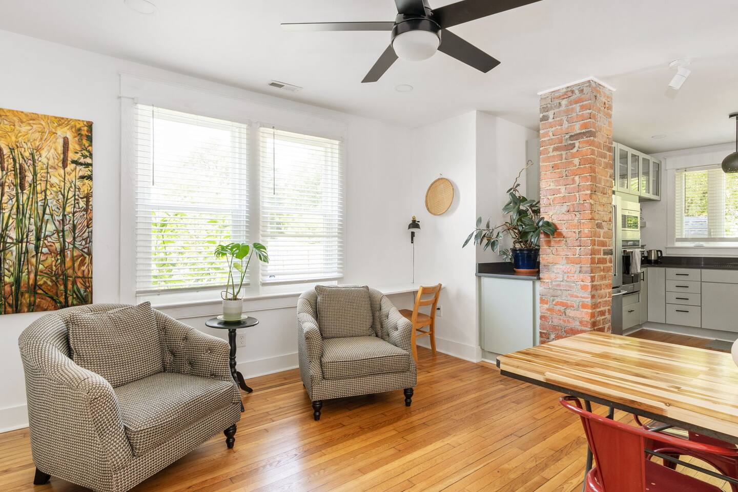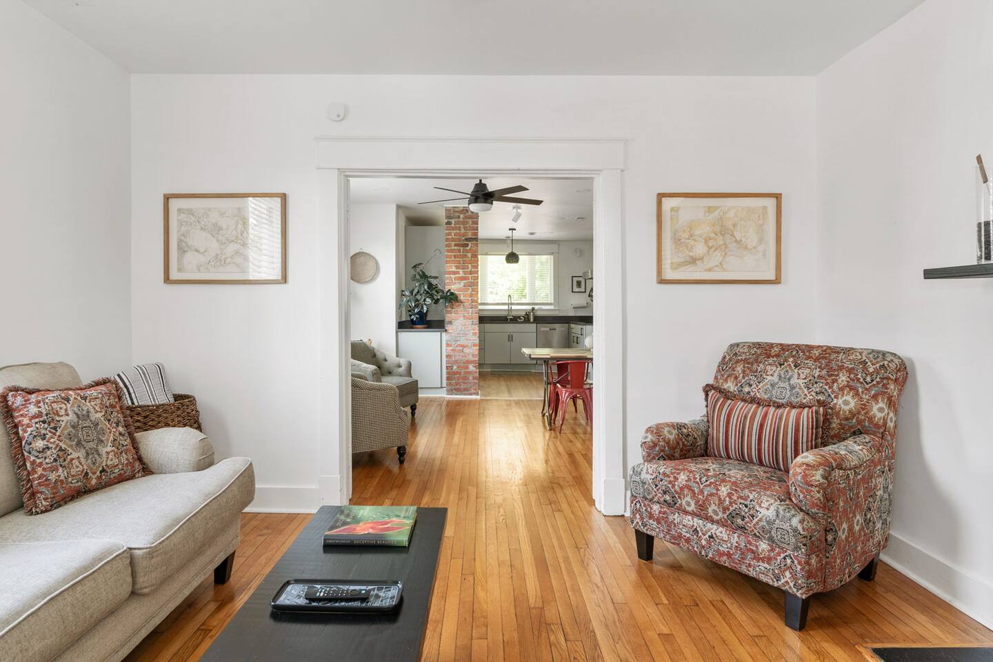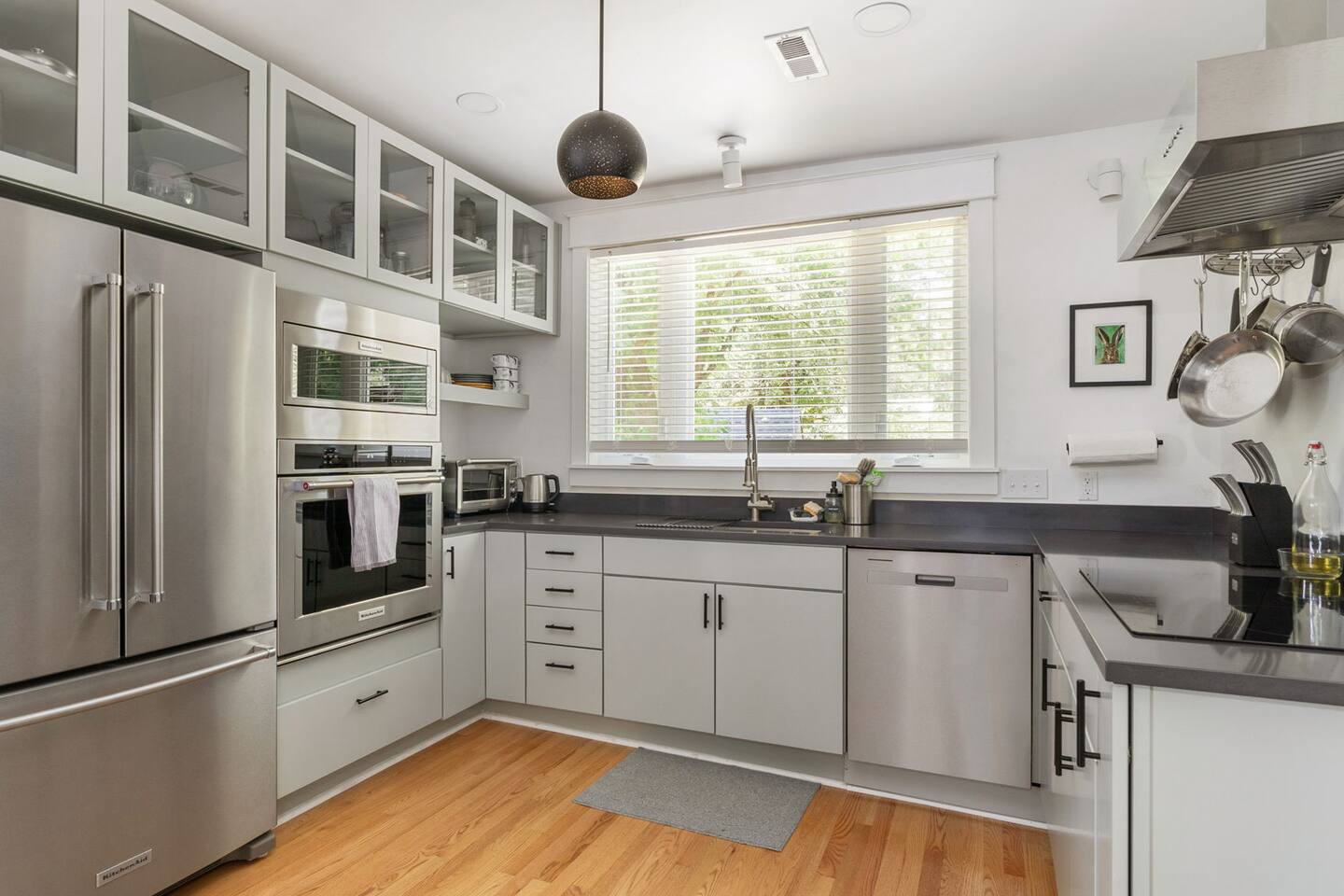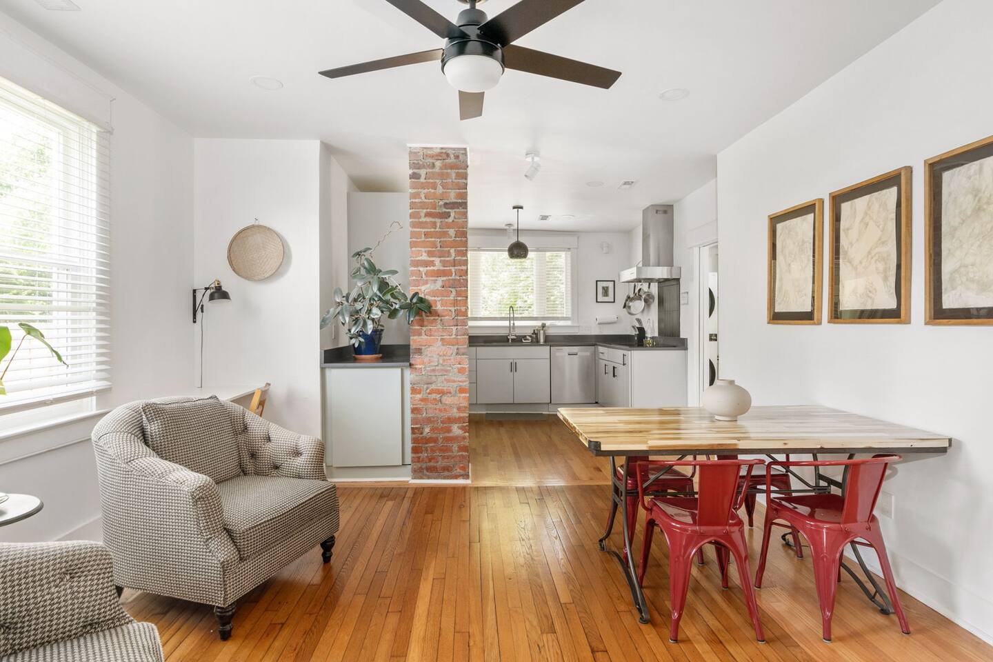 Highlights You’ll Love: * Spacious ⅓-acre private backyard surrounded by a 6-foot privacy fence — perfect for unwinding and letting pets explore * Two queen-sized bedrooms designed for a restful night’s sleep with blackout curtains * Convenient paved driveway with 2 private parking spaces — includes access to a 120V outlet for EV charging * Beautiful permaculture garden featuring fruit trees and pollinator-friendly native plants * Newly renovated and fully equipped chef’s kitchen * Sleeper sofa in the living room for additional guests or flexible sleeping arrangements * Quick 10-minute drive to downtown Richmond When you arrive, a stone path, lined with solar lights brings you to the front porch with a swinging bench. The smart-lock entry opens to the living room where there is a full-sized pull out sofa, comfy chair, fireplace and 55-inch smart TV. From there french doors open to a large dining room with a lounge area connecting to the kitchen. The kitchen is fully equipped with high-tech appliances, as well as coffee and tea and all of the essentials you would need to cook a meal. This home has 2 bedrooms, each with a queen bed and spacious closet for storage. For those who like to sleep in, there are black-out curtains in both bedrooms. For easy device charging there are touch-lamps with USB-C and regular USB ports on both sides of each queen bed. The home has one full bathroom with a shower/tub. Shampoo, conditioner and body wash are all provided. Towards the back of the house is the laundry room that has a stacked washer & dryer, laundry soap, ironing board, iron, trash and recycling container. ABOUT THE PERMACULTURE YARD The 1/3-acre expansive permaculture garden began in 21 as a passion project by the owner, Melissa, who designed the space to support wildlife, restore the local ecosystem, and create a peaceful refuge for guests and pets alike. The property is graced by majestic old growth willow oaks that provide shade and shelter, creating a serene canopy for the garden below. Guests can enjoy bird watching at their leisure, as a wide array of bird species visit the feeder to feast throughout the day. Butterflies — including monarchs — flutter gracefully among the flowering plants, adding to the tranquil atmosphere. The landscape features an abundance of food-bearing and native species — like figs, elderberries, strawberries, mulberries, and persimmon — that you're welcome to enjoy when in season. Whether you’re sipping coffee in the screened gazebo, watching your dog explore the yard off-leash, or simply soaking in the quiet beauty of this rare urban green space, this home offers a truly special kind of stay — private, peaceful, and full of natural wonder. ACCESS TO RICHMOND EVENTS & ATTRACTIONS Coming in town for a Richmond event? We are located conveniently close to downtown for easy access. Here are a few key events: - Richmond Marathon Starting Line (1st and Broad Street)- ~11 minute drive (4 miles) - Brown's Island (ending point for many races & location of many festivals and events)- ~9 min drive (3 miles) - Maymont - ~11 min drive (4 miles) - Virginia Museum of the Fine Arts (VMFA)- ~14 min drive (5 miles)