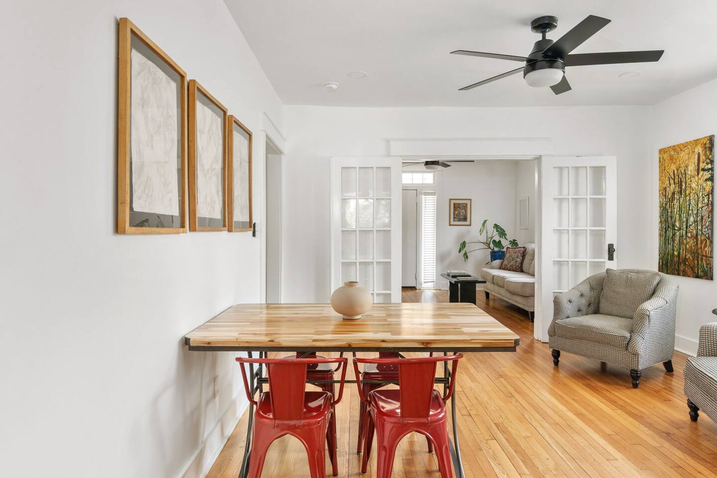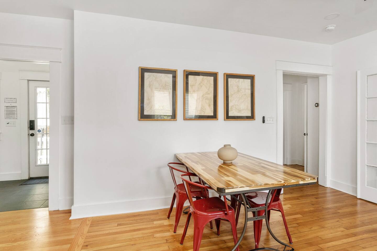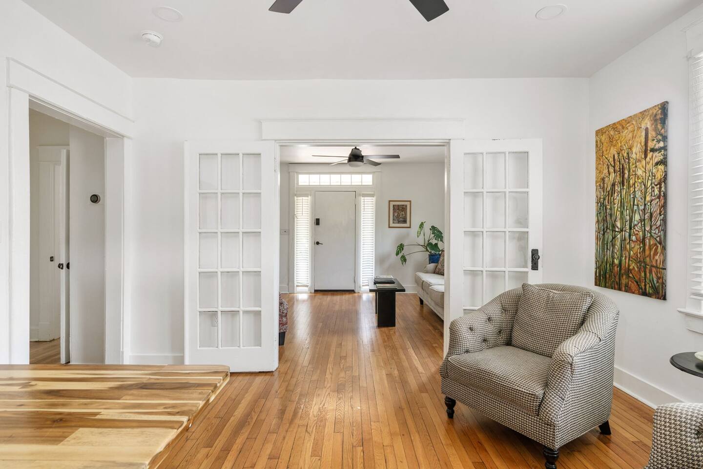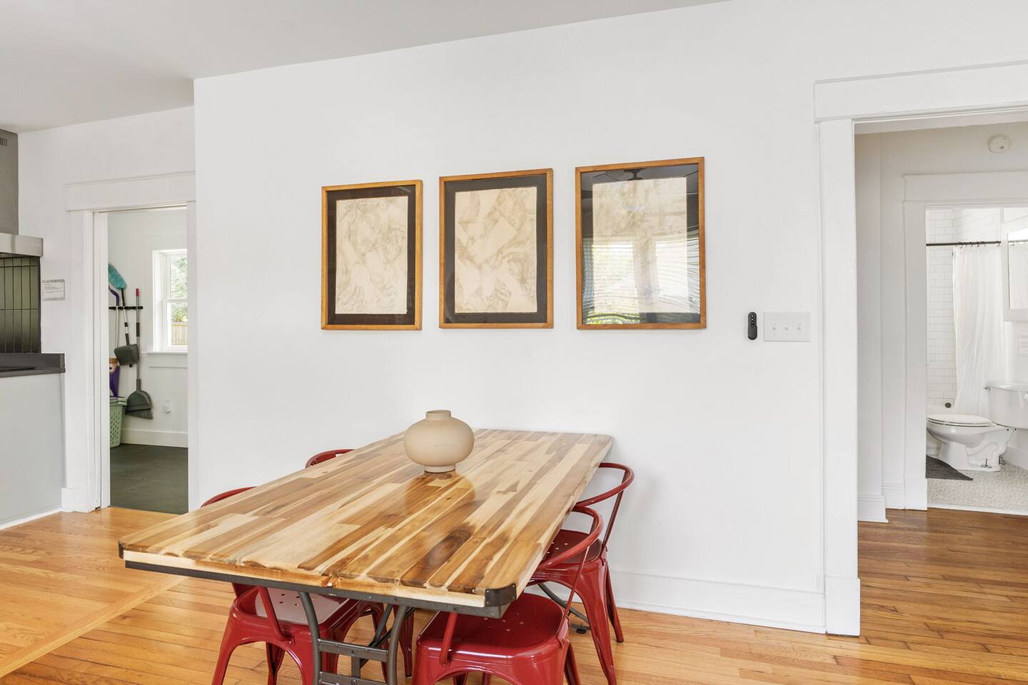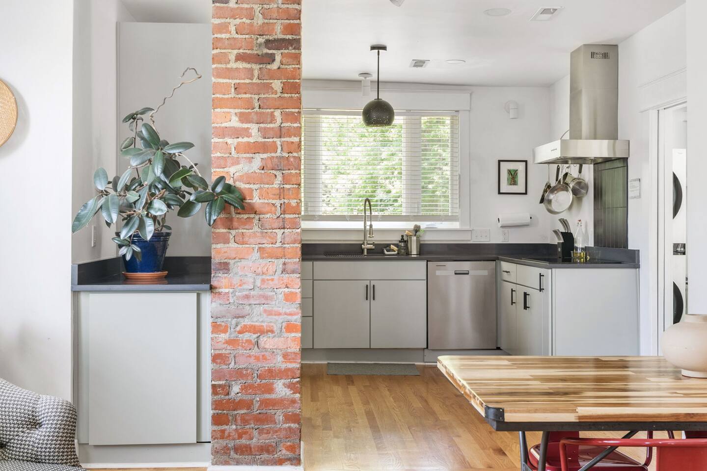 Highlights You’ll Love: * Spacious ⅓-acre private backyard surrounded by a 6-foot privacy fence — perfect for unwinding and letting pets explore * Two queen-sized bedrooms designed for a restful night’s sleep with blackout curtains * Convenient paved driveway with 2 private parking spaces — includes access to a 120V outlet for EV charging * Beautiful permaculture garden featuring fruit trees and pollinator-friendly native plants * Newly renovated and fully equipped chef’s kitchen * Sleeper sofa in the living room for additional guests or flexible sleeping arrangements * Quick 10-minute drive to downtown Richmond When you arrive, a stone path, lined with solar lights brings you to the front porch with a swinging bench. The smart-lock entry opens to the living room where there is a full-sized pull out sofa, comfy chair, fireplace and 55-inch smart TV. From there french doors open to a large dining room with a lounge area connecting to the kitchen. The kitchen is fully equipped with high-tech appliances, as well as coffee and tea and all of the essentials you would need to cook a meal. This home has 2 bedrooms, each with a queen bed and spacious closet for storage. For those who like to sleep in, there are black-out curtains in both bedrooms. For easy device charging there are touch-lamps with USB-C and regular USB ports on both sides of each queen bed. The home has one full bathroom with a shower/tub. Shampoo, conditioner and body wash are all provided. Towards the back of the house is the laundry room that has a stacked washer & dryer, laundry soap, ironing board, iron, trash and recycling container. ABOUT THE PERMACULTURE YARD The 1/3-acre expansive permaculture garden began in 21 as a passion project by the owner, Melissa, who designed the space to support wildlife, restore the local ecosystem, and create a peaceful refuge for guests and pets alike. The property is graced by majestic old growth willow oaks that provide shade and shelter, creating a serene canopy for the garden below. Guests can enjoy bird watching at their leisure, as a wide array of bird species visit the feeder to feast throughout the day. Butterflies — including monarchs — flutter gracefully among the flowering plants, adding to the tranquil atmosphere. The landscape features an abundance of food-bearing and native species — like figs, elderberries, strawberries, mulberries, and persimmon — that you're welcome to enjoy when in season. Whether you’re sipping coffee in the screened gazebo, watching your dog explore the yard off-leash, or simply soaking in the quiet beauty of this rare urban green space, this home offers a truly special kind of stay — private, peaceful, and full of natural wonder. ACCESS TO RICHMOND EVENTS & ATTRACTIONS Coming in town for a Richmond event? We are located conveniently close to downtown for easy access. Here are a few key events: - Richmond Marathon Starting Line (1st and Broad Street)- ~11 minute drive (4 miles) - Brown's Island (ending point for many races & location of many festivals and events)- ~9 min drive (3 miles) - Maymont - ~11 min drive (4 miles) - Virginia Museum of the Fine Arts (VMFA)- ~14 min drive (5 miles)